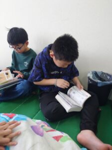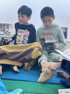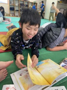 久しぶりの読書会でしたが・・・こどもたちは、集中して読んでおり読書会を楽しんでいました!!また、家から持って来た本について自信満々に紹介したりと、こどもたちの間で会話が盛り上がっていました(^^♪今後も読書会などの活動を通してこどもたちの興味関心を持つきっかけを作ったり、自分では気づけない視点やあたらしい知識を習得しながら読書習慣の定着や本を通じて仲間づくりにも繋げていけたらと思います(*^^*)