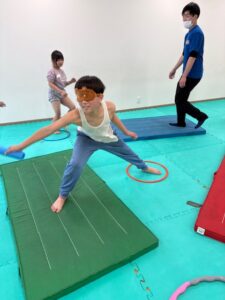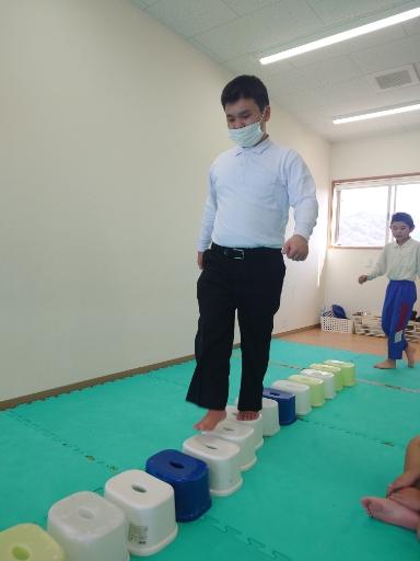次は、イスを跳び越えるぞ~☆(*´▽`*)