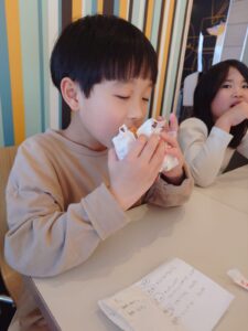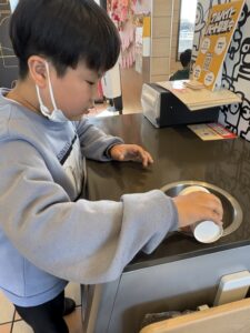 初めておやつを食べに行くこども達もいましたが、注文や片付けなど、自分たちで行う姿が見られ、成長を感じました(´▽`*)